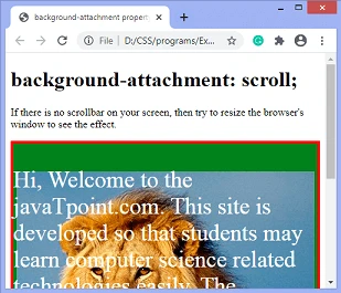 説明: background-attachment プロパティは、背景画像を固定するか、ページコンテンツと共にスクロールさせるかを設定します。
