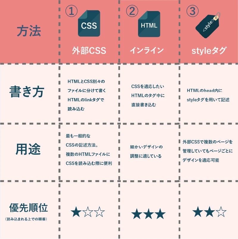 - 複数のHTMLファイルに同じCSSを適用できるため、コードの再利用性が高い。