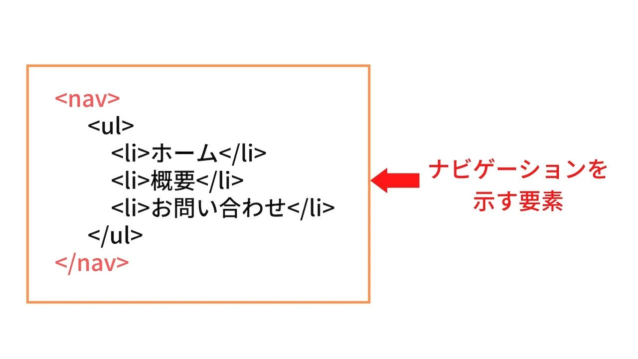 <nav>タグは、そのページの主要なナビゲーションリンクをマークアップするために使用します。具体的には、以下のようなナビゲーションが該当します。
